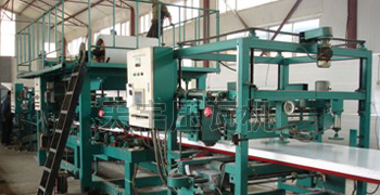 彩鋼保溫復(fù)合板材是一種新型的建筑材料,其內(nèi)、外面層為耐候彩色 建筑用鋼板、中間填充巖棉、聚苯乙烯{EPs)、聚氯酯及玻璃棉等保溫 隔聲材料。泡沫復(fù)合板設(shè)備具有良好的耐候、保溫、隔聲、高強(qiáng)度